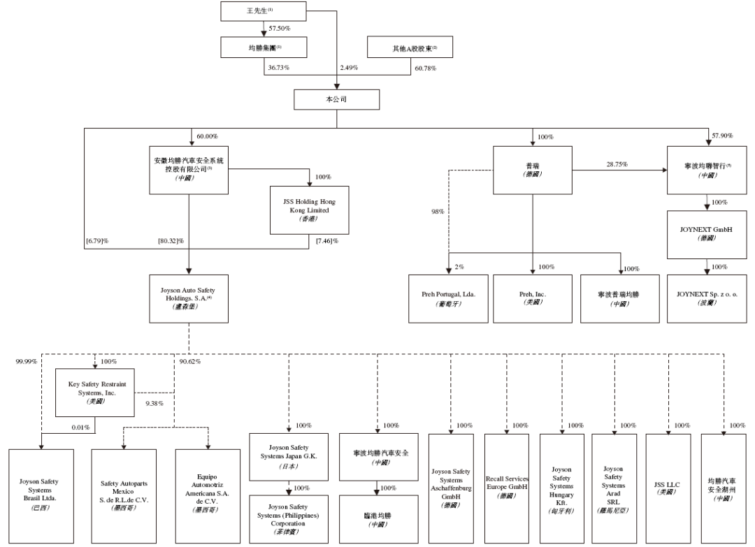 * 均胜集团,由王剑峰先生及其母亲杜元春女士分别拥有57.50%、42.50%,除均胜电子业务外,均胜集团及其附属公司从事投资控股、房地产开发、智能制造和其他业务。