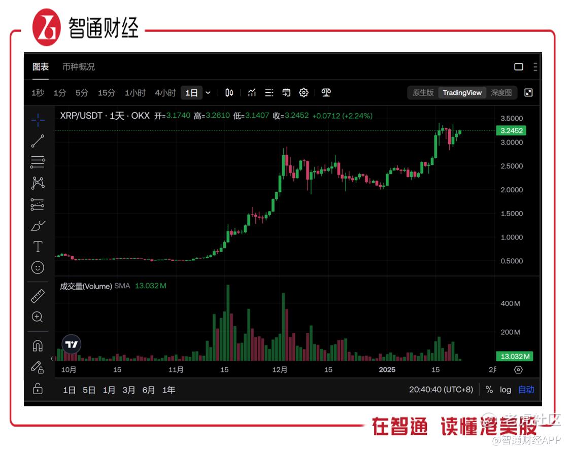 智通财经APP了解到,2025年1月20日,特朗普重登白宫宝座,而特朗普以及马斯克等追随者大都支持加密货币,投资者预期加密货币政策将明朗化,而这也导致了比特币的大涨的行情。不过加密货币行情分化较为严重,以比特币及瑞波币等主流币获得资金追捧不断走高,而小市值的代币因波动率大存在高风险。