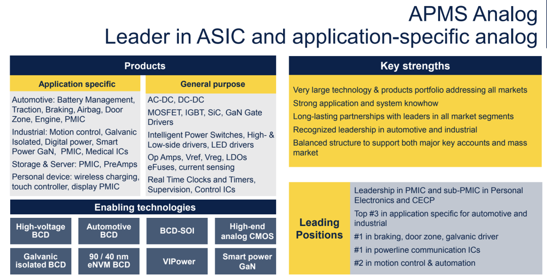 第一篇我们覆盖Analogy, Power & Discrete, MEMS and Sensors Group(APMS),如何通过技术布局与市场策略,在智能传感器和碳化硅(SiC)等领域确立了竞争优势。