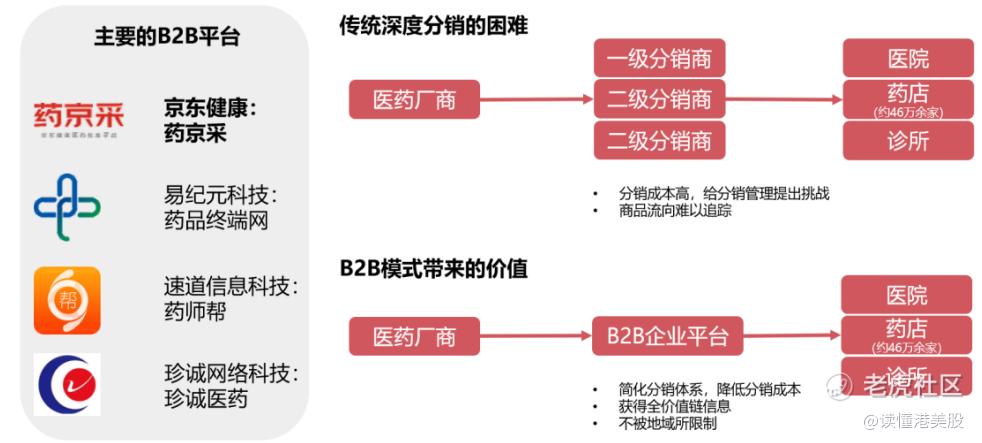 京东健康不仅拥有直接服务于患者的B2C业务,在医药供应链上还有“药京采”这种面对线下诊所和药店的B2B业务。