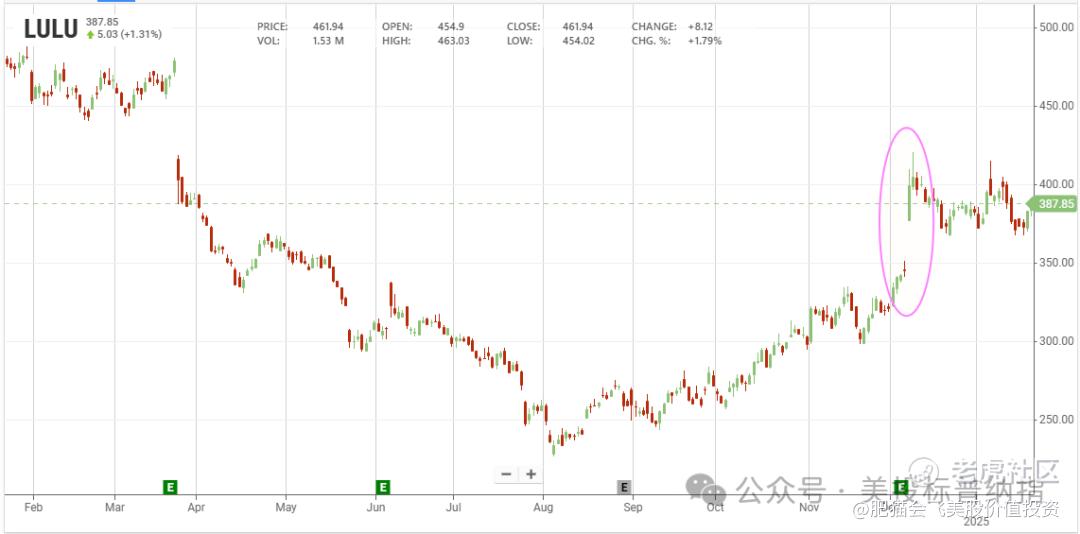 2024年12月LULU的跳空暴涨