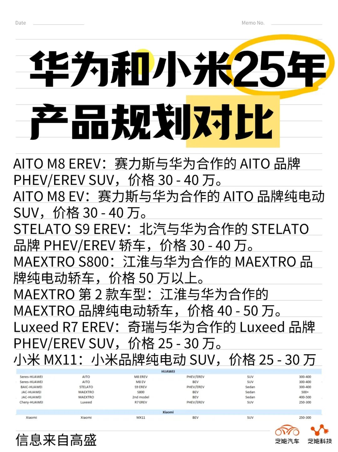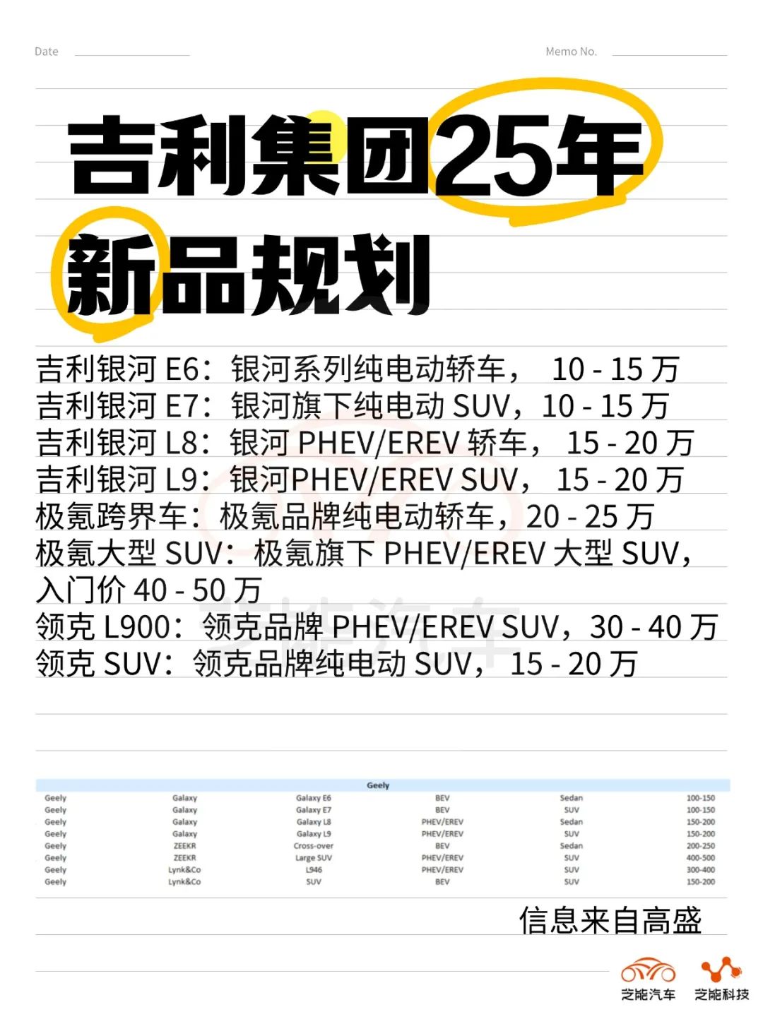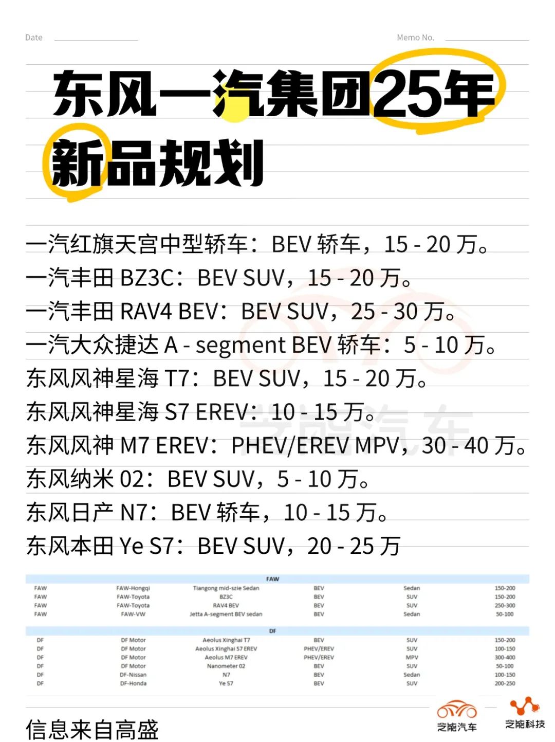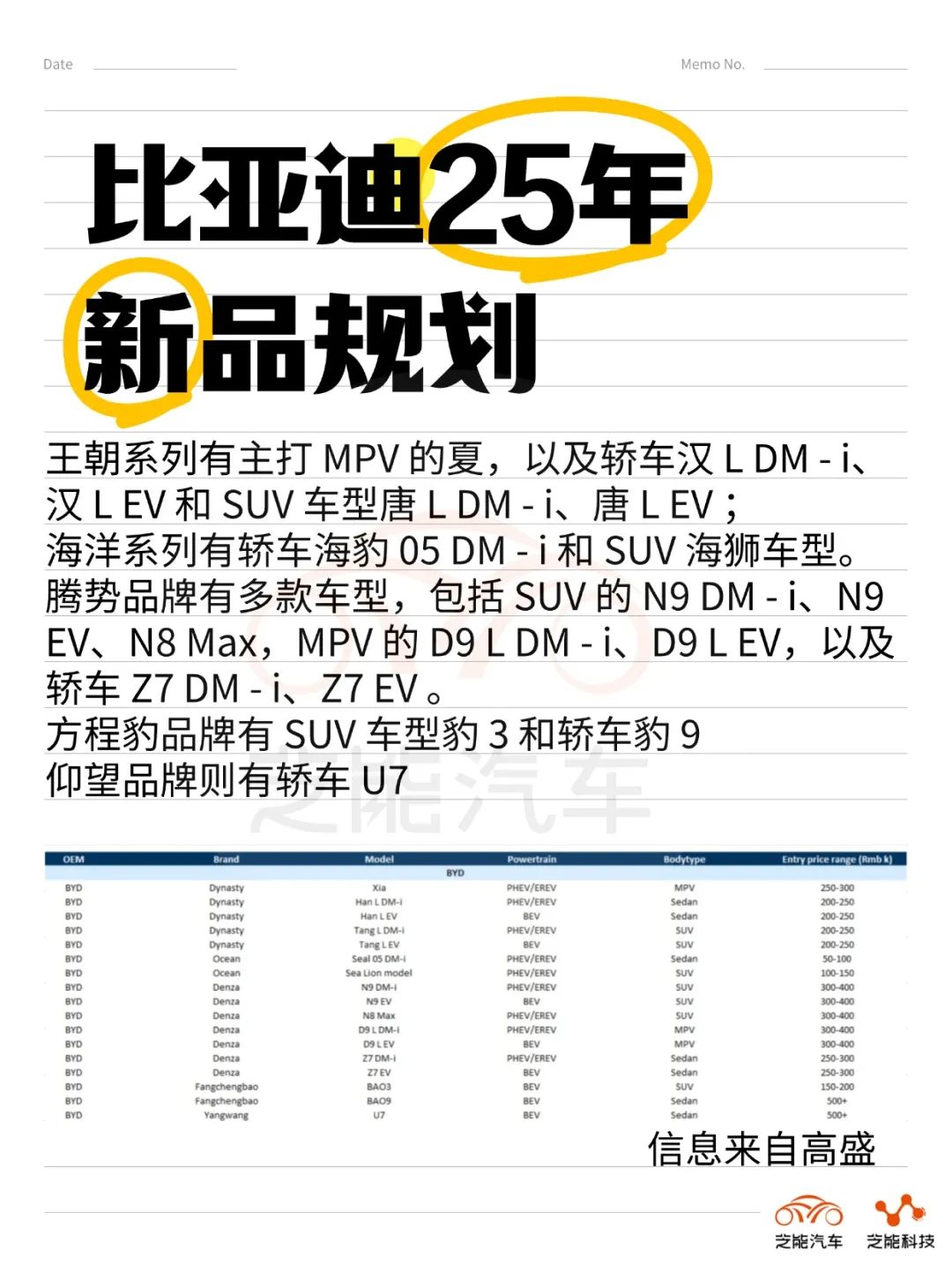 昨天我们分享了高盛做的一些统计和趋势判断(高盛对2025年中国汽车市场的判断:智驾普及,出口受限)。从传统汽车巨头到新兴造车势力,从本土品牌到合资品牌,不同企业的产品规划各有侧重,以下是不同公司2025年产品规划的简单罗列: