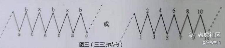 调整浪的最后一种类型是两个或三个简单形态的组合,属于较不常见的复杂形态。图2和图3是两个例子。在图2中,两组abc形态合并起来,形成了七浪。在图3中,三组abc形态合并在一起,形成了十一浪。朋友们请注意,这些形态与经典的交易区间(或者巩固形态)何其相似乃尔