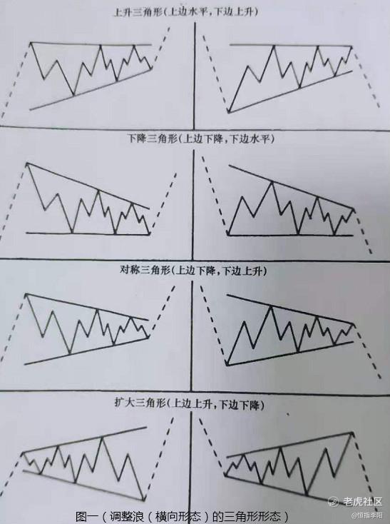今天 学习三角形,三角形通常出现在第4浪中,先于主要趋势的最后一轮动作(它也可能在a—b-c序列调整的b浪中出现)。因此,在上升趋势中,我们可以说三角形既可能是看涨的,也可能是看跌的。讲它看涨,是就它意味着趋势将恢复这层意义而言的。而说它看跌,则是因为它表明在完成剩下的一个上涨浪之后,市场可能也就到顶了(图1)。