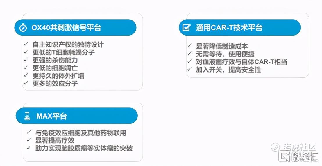 在细胞治疗领域拥有独特的优势和自主的知识产权的隆耀生物,管线包括多款产品,正在推进CD20-CART-OX40、通用型CAR-T和MAX三款产品的申报工作。主要亮点也集中在这三大平台之上。