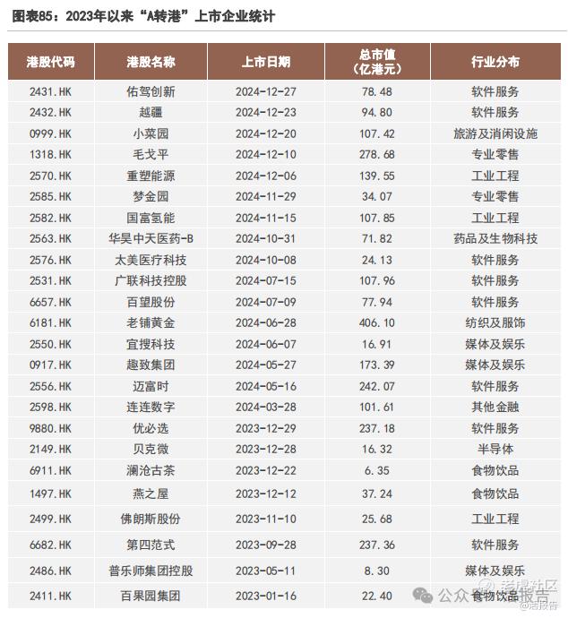 据LiveReport大数据不完全统计,截至2024年12月31日,2023年以来共有24家“A转港”企业成功在港上市,以软件服务、媒体娱乐、食品饮料行业为主。