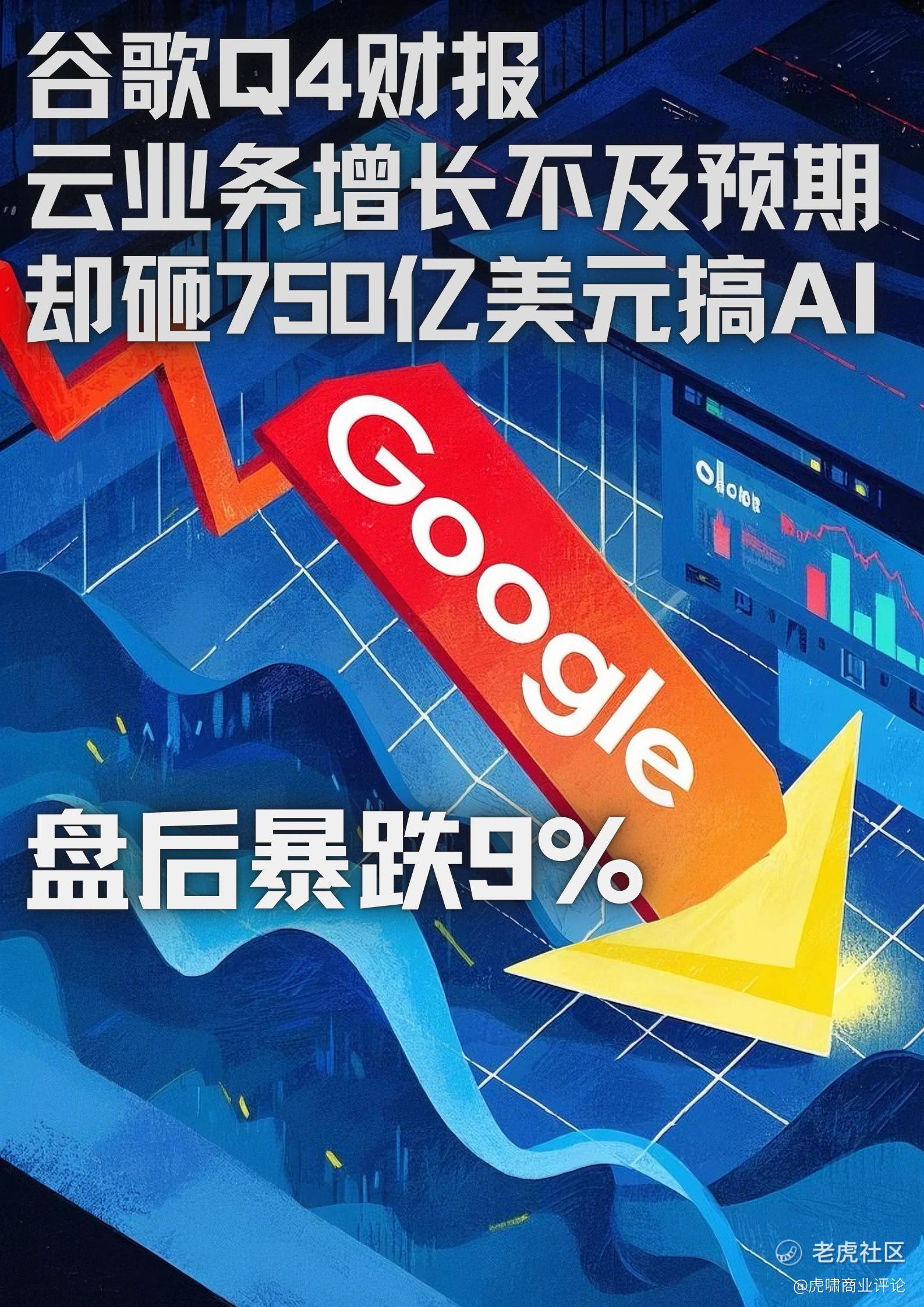 谷歌Q4财报:云业务不及预期,却砸750亿美元搞AI?盘后暴跌9%