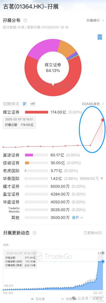 其中,辉立证券放出了174亿港元,富途证券放出60.17亿港元,信诚证券放出30亿港元,这三家的孖展金额占比超过97%。从孖展认购来看,古茗已然非常火热。