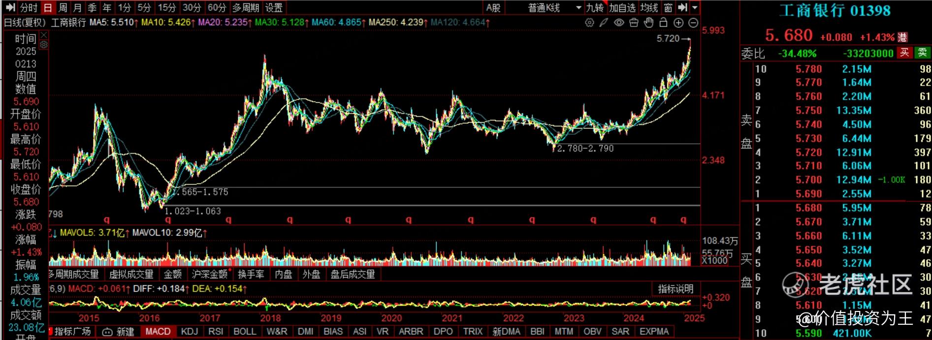 业绩企稳之下,银行股有望响应国家号召,提升分红比例,拿工商银行为例,以前,公司只在年报披露后进行分红,2024年中,工商银行罕见分红,提升了分红频次,先进分红比例也有望提升!