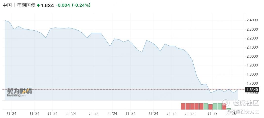 除了股息率诱人外,随着中国经济放缓,无风险收益率大幅下降,10年期国债的收益率只有1.6%:
