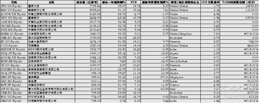 整体上看,全球银行业的市盈率都不高,大多在高个位数-低两位数之间。