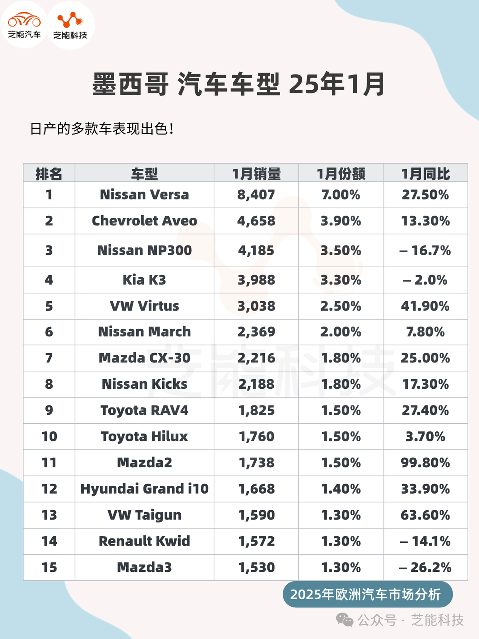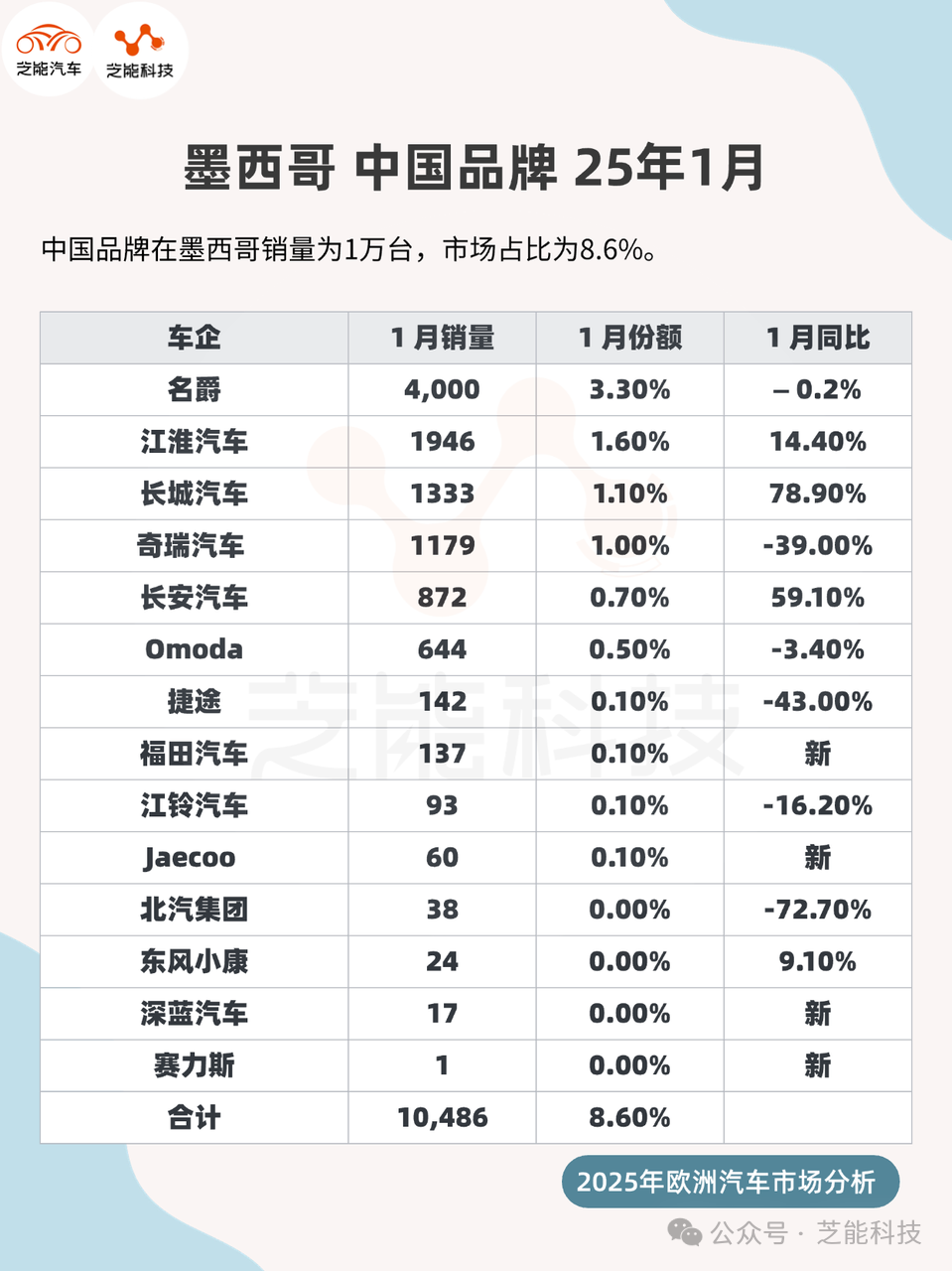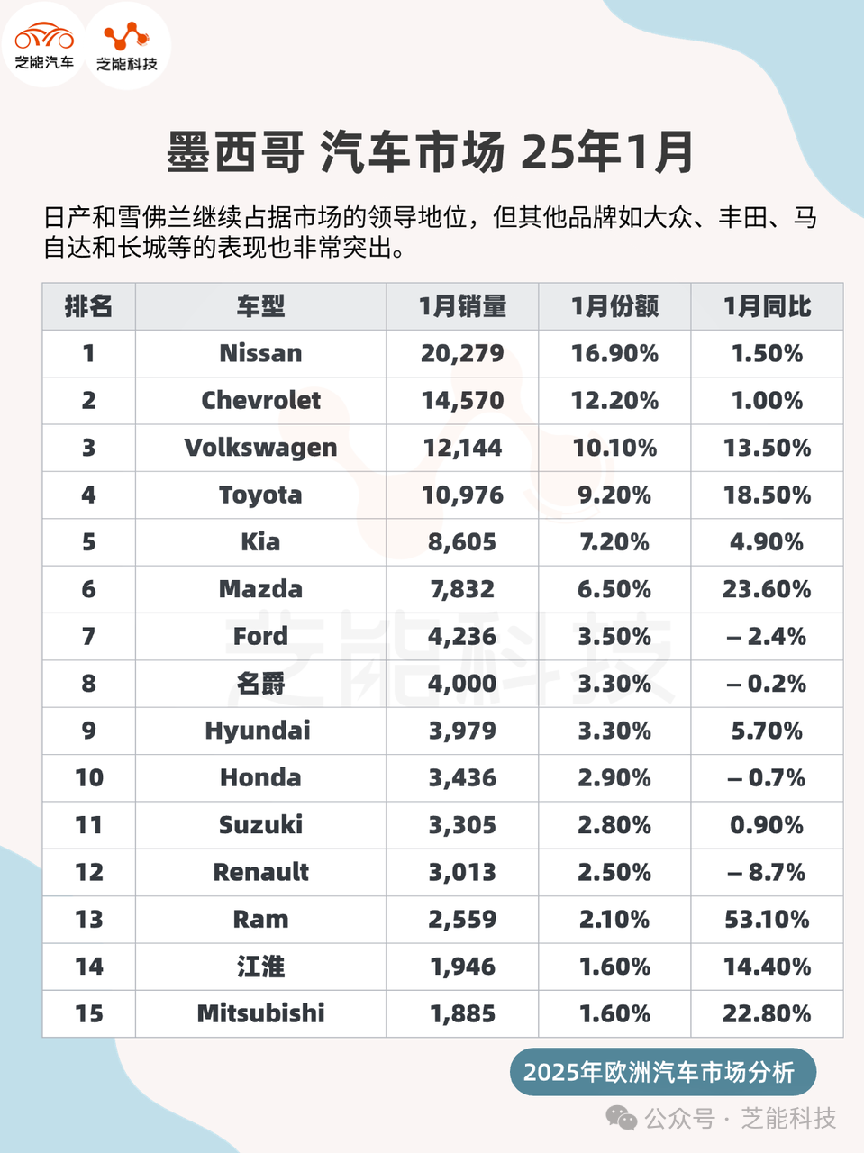 北美洲车市 | 墨西哥2025年1月:同比增长5.9%,中国品牌销量突出