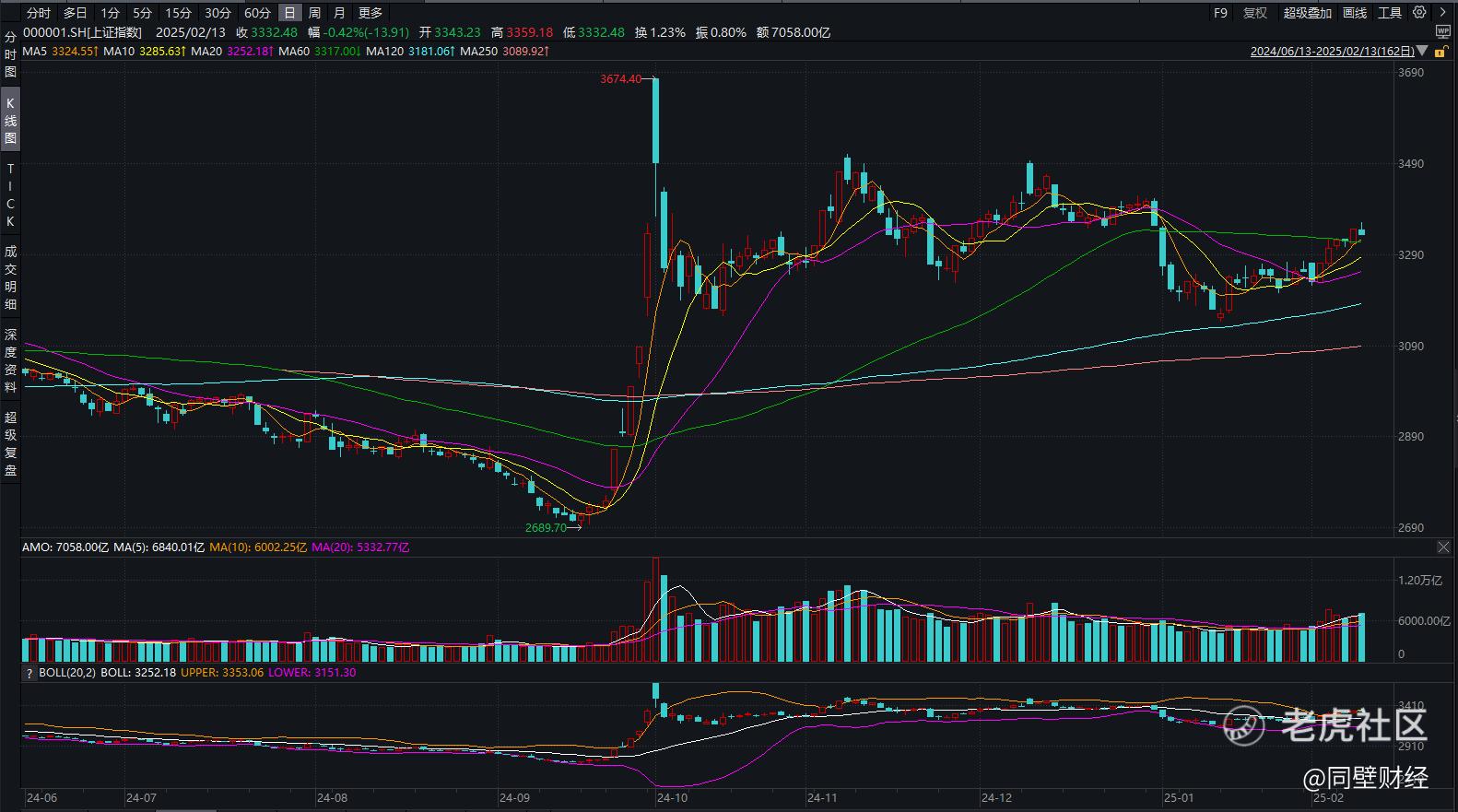 布林线显示,上证指数在围绕上轨(3350点)附近波动,市场处于震荡整理状态,短期可能存在反弹需求。而中轨(3252点)提供了中期强力支撑,量价关系方面,市场整体成交量相比昨日放量超千亿,市场情绪相比昨日较为活跃,大家对市场后续走势仍持积极态度。综合来看,上证指数虽短期走势偏弱,但从量价关系、布林线中轨支撑来看,后续市场仍然有望迎来反弹。