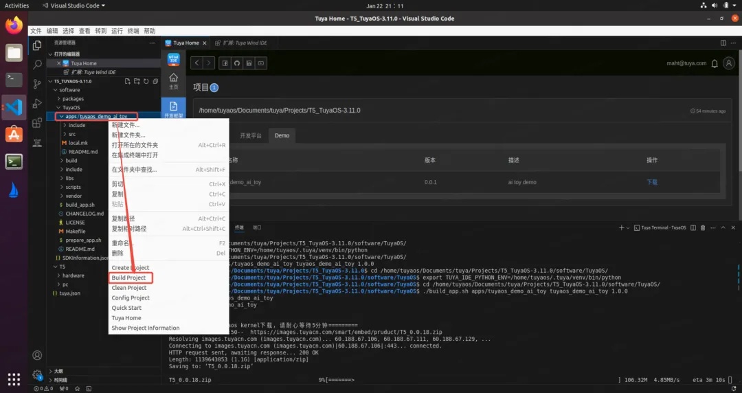 目前 "Wukong" AI 开发框架 1.0 版本已经发布,开发者基于该框架开发的 AI 玩具已经实现量产,并受到了品牌消费者的广泛认可。开发者如果想要开发自己的 AI 硬件产品,通过 Tuya Wind IDE 即可下载 "Wukong" AI 开发框架,接下来一起看下具体操作步骤。