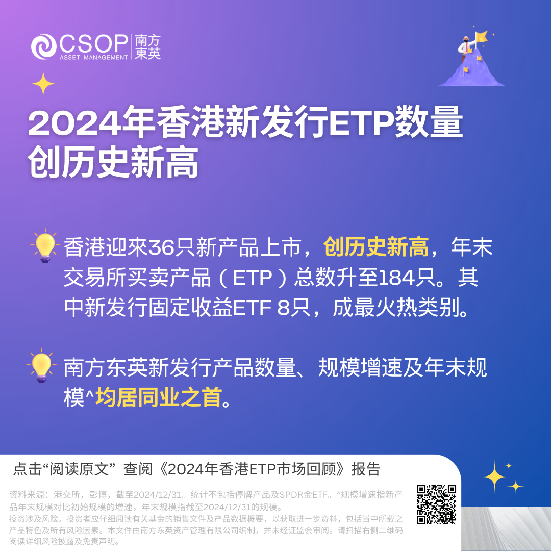 南方东英于官网发布《2024年香港ETP市场回顾》,总结过往一年香港ETP市场上的精彩纷呈,并在此精选出2024年五大ETP市场亮点。