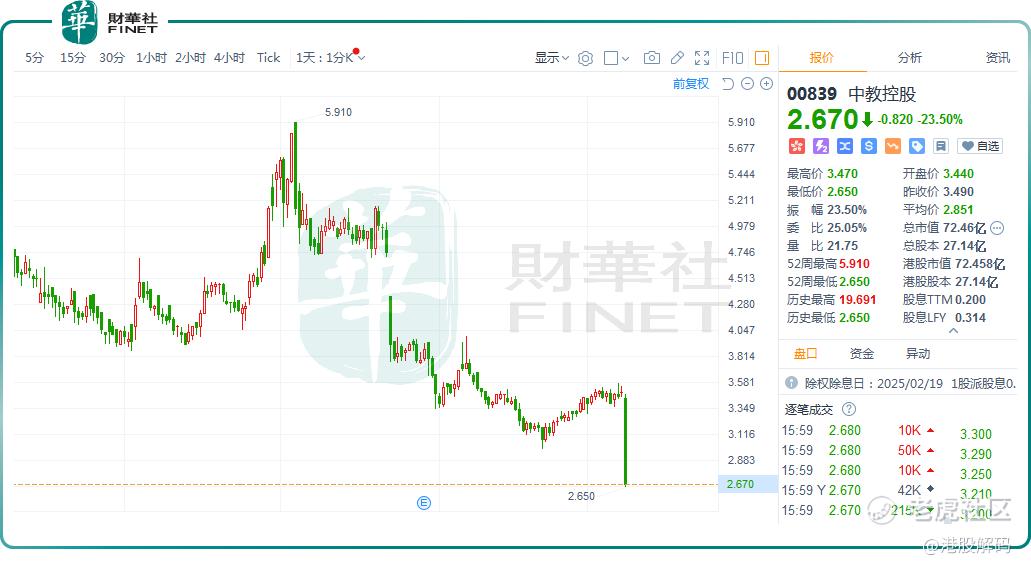教育板块承压!中教控股暴跌23.5%,发生了什么?