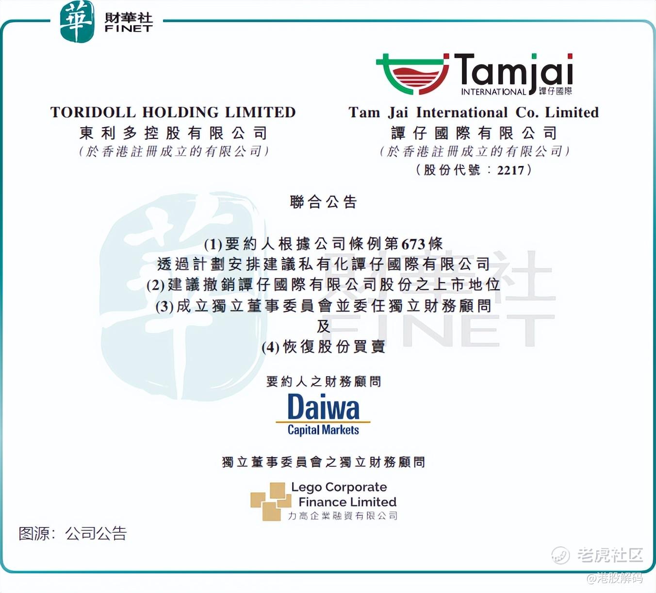 东利多向谭仔国际提出的私有化建议,出价颇具吸引力。