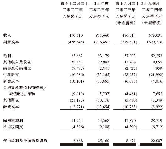 招股书显示,在过去的2022年、2023年和2024年前九个月,盘兴数智的营业收入分别为人民币4.91亿、8.12亿和6.73亿元,相应的净利润分别为人民币666.8万、2516.0万和2200.7万元。2022年、2023年的经调整净利润分别为1692.3万、2948.6万元。