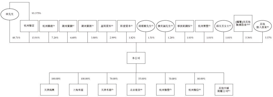 田宁先生,直接持股48.71%,通过杭州盘云*持股13.91%,合计持股62.61%。