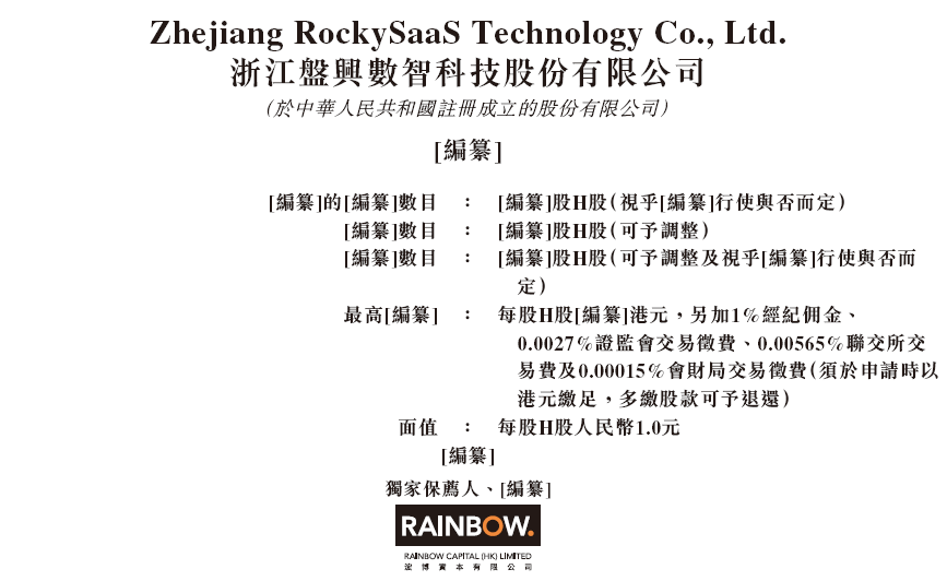 2025年1月24日,来自浙江杭州的浙江盘兴数智科技股份有限公司 Zhejiang RockySaaS Technology Co., Ltd. (以下简称“盘兴数智”),向港交所递交招股书,拟香港主板上市。