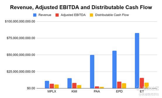 Energy Transfer在2024财年实现了826.7亿美元的收入、154.8亿美元的调整后EBITDA和83.6亿美元的DCF,仍然是MLP领域的王者。当我们将Energy Transfer与其他大型MLP(如Enterprise Products、Plains All American和MPLX LP进行比较时,它从Alerian MLP Energy Transfer ETF的最大持股中获得了最多的收入和盈利能力。Energy Transfer与金德尔摩根进行比较,因为金德尔摩根拥有全国最大的天然气管道基础设施之一。市场没有充分评估Energy Transfer的价值,因为其股价相比同行被低估了。