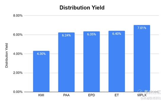 Energy Transfer的资产负债表上有大量债务,尽管其估值倍数较低,但它没有过度举债来推动增长。Energy Transfer的净债务与调整后EBITDA的比率为3.89倍。Energy Transfer每年分配1.30美元,收益率为6.4%。尽管Energy Transfer处于牛市,其分配收益率在同行中仍然是第二高的。