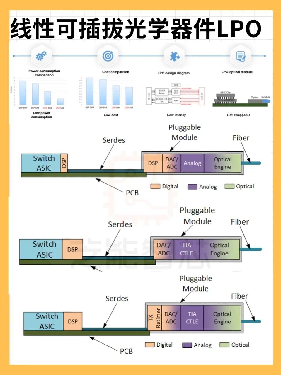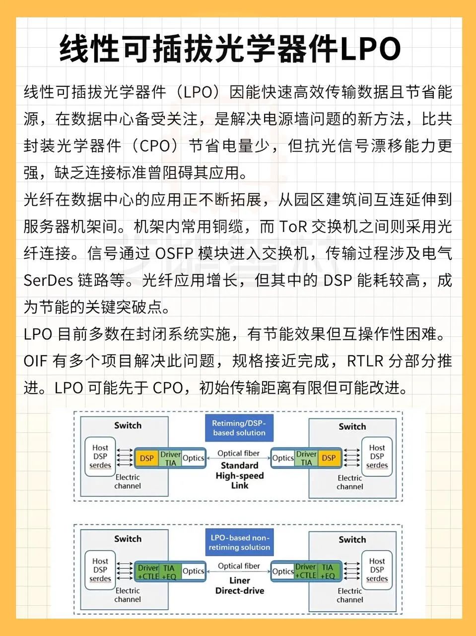 通过消除模块内的DSP芯片,LPO简化了信号路径,降低了功耗,同时保留了数据传输的高效性。