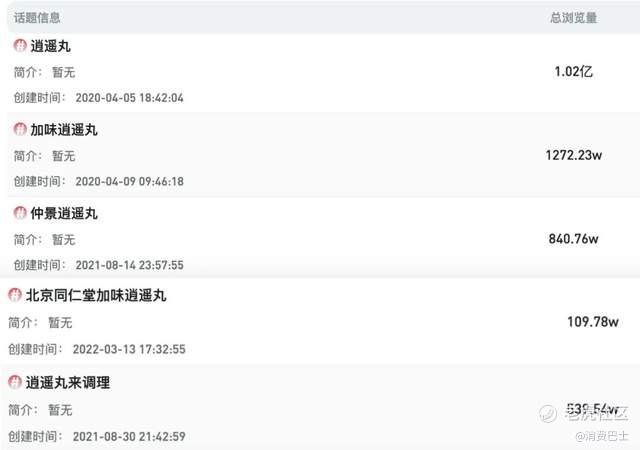 根据新红数据,和逍遥丸相关的话题始建于2020年,其中网友高频提及的“仲景逍遥丸”和“同仁堂加味逍遥丸”的话题,分别建立在2021年和2022年。从那时开始,用逍遥丸调理各种小毛病的帖子就渐渐多了起来。