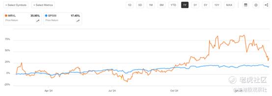 在过去的12个月中,迈威尔科技上涨了约36%,而标普500指数仅上涨了17%,大幅跑赢标普500。