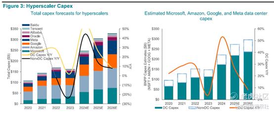 自DeepSeek对当前资本支出周期的可持续性提出质疑以来,像英伟达、AMD、博通和迈威尔科技这样的半导体股票一直表现不佳。但几周后,这种担忧似乎毫无根据:所有主要的超大规模云服务提供商都确认或超出了分析师对AI资本支出基础设施的预期,未来12个月的支出预期被上调。根据法国巴黎银行收集和预期的数据,仅美国巨头微软、亚马逊、谷歌和Meta就计划将数据中心资本支出同比增长40%,总支出达到2250亿至2400亿美元。尽管现在对2026年的预期还为时尚早,但法国巴黎银行预计那一年数据中心资本支出将同比增长10%。无论如何,AI支出周期仍然存在。