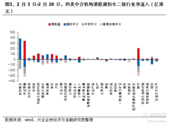 根据港股托管机构拆分来看,南下资金或是本轮做多港股的主力资金之一。1月14日至2月26日,港股通累计净流入1672.1亿港元,而同期国际中介、中资中介和香港本地中介分别减仓787.0亿港元、554.6亿港元、97.7亿港元。