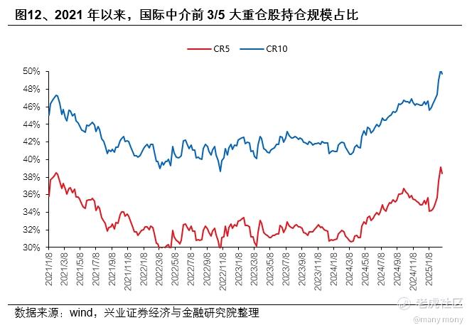 但值得注意的是,2024年4月以来,国际中介前五/前十大重仓股持仓规模占比飙升,或指向外资持股集中度持续上升、主要拥抱港股科技和金融龙头。