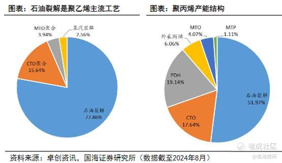 据卓创资讯,截至2024年8月,我国聚乙烯产能中石油裂解占比达78%。聚丙烯产能中,石油裂解占51.97%。