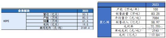 结合企业数据来看,卫星化学以进口乙烷为原料,据券商测算,2023年,其HDPE(高密度聚乙烯)单吨毛利达3000元以上。而宝丰能源靠煤制烯烃,其聚乙烯产品单吨毛利大概只有2000元+。