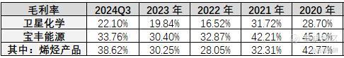 来源:公开数据整理 烯烃产品毛利率为2024年半年度数据