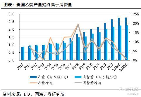 行业普遍认为,乙烷裂解具有显著成本优势。乙烷是天然气开采时的伴生气。页岩气革命以来,美国天然气产量快速提升,同时页岩气中乙烷含量较高,进而带动乙烷产量大幅增加,长期处于供给宽松局面。