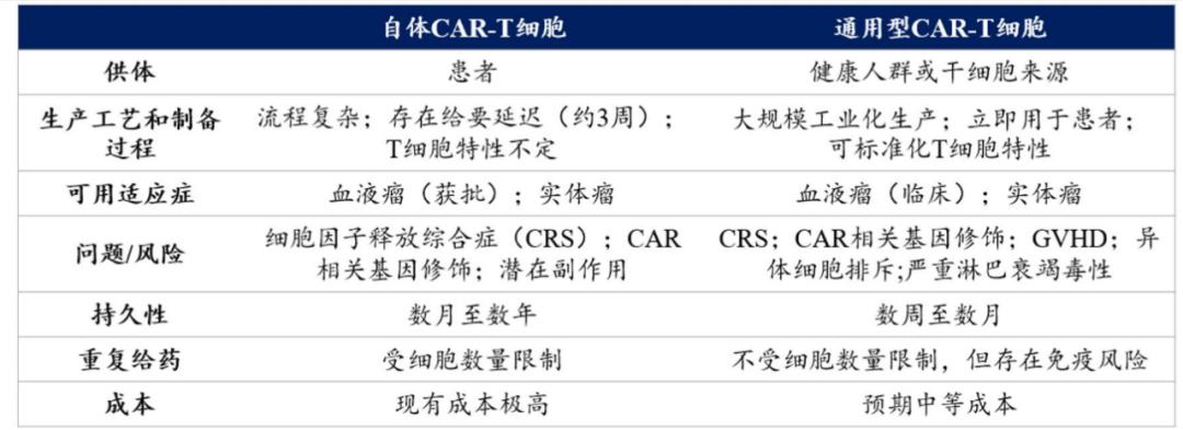 图:自体CAR-T与通用型CAR-T区别,来源:东吴证券