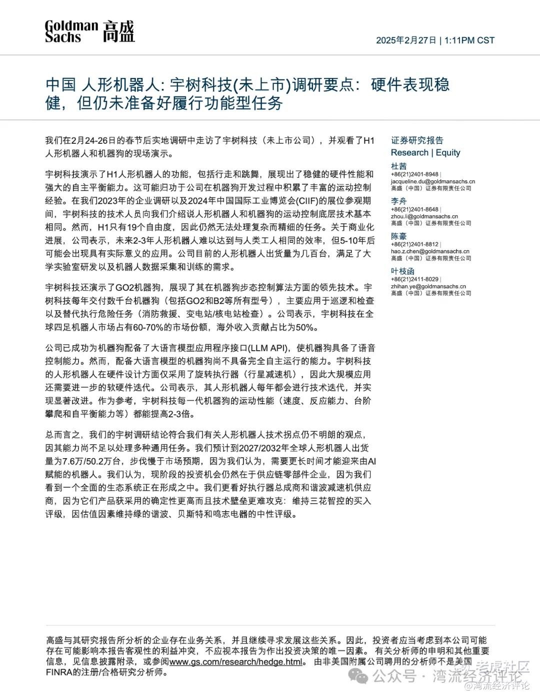 这也正是《湾流经济评论》想说的——高盛对于中国人形机器人的发展现状可能存在偏差,市场可能曲解了高盛的意思。