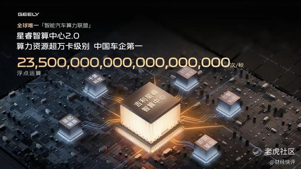 在普及高阶智驾上,比亚迪的优势在于,作为国内销量第一的车企,可以通过规模效应来降低成本,从而形成价格优势,在市占率上形成正向反馈;而吉利的千里浩瀚不堆配置,打算靠算力突围,直接喊出了“中国车企第一”23.5EFLOP的算力资源。
