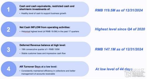 递延收入这一关键指标,也进一步揭示出极光蕴藏的长期发展潜力。当极光的递延收入呈现良好态势,背后折射出的是稳固的客户根基,意味着众多客户信赖极光的产品与服务,愿意与极光达成长期合作。而凭借客户忠诚度,客户将持续为极光输送稳定的收入与现金流,为其稳健发展提供坚实的保障。