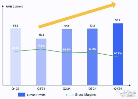第四季度,极光的总毛利润达到5669万元,同、环比增长6%和7%,也创下了过去8个季度最高水平,反映出盈利能力的增强。