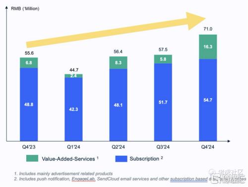 2. 核心的开发者订阅服务收入实现环比和同比增长,达到5,470万元人民币,创下季度收入的历史新高;