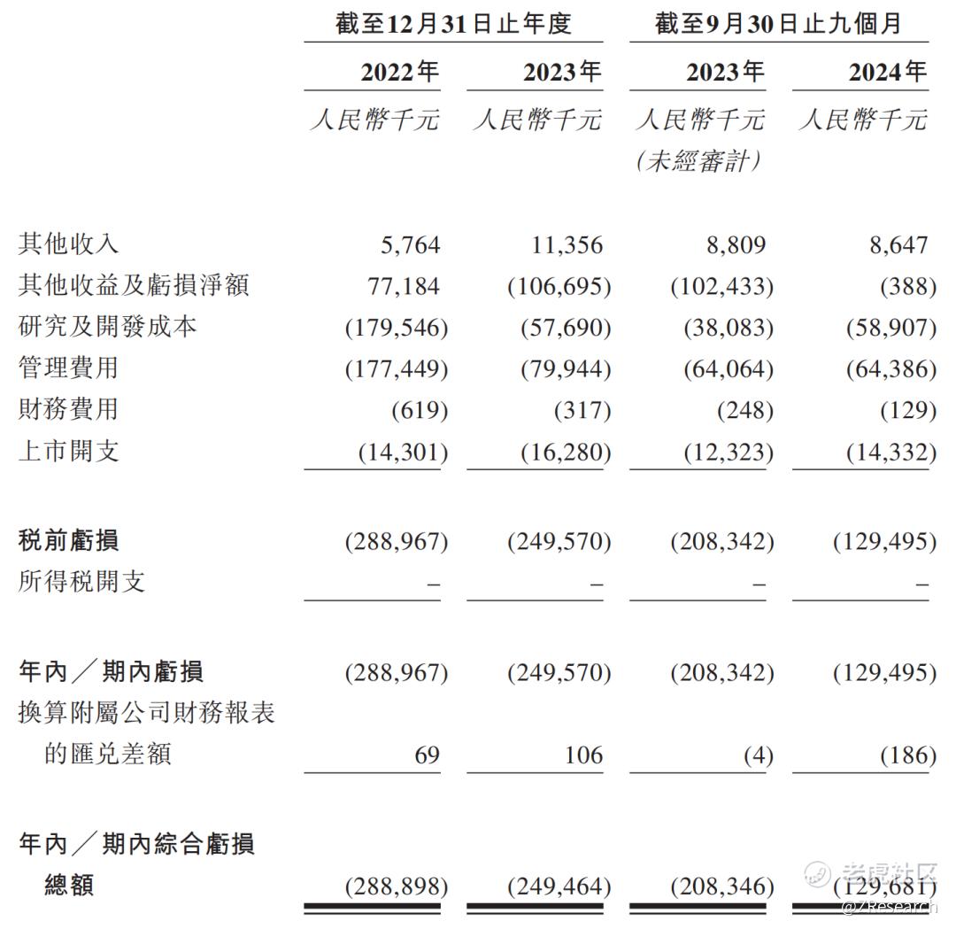 维升药业目前尚无商业化产品,所有收入均来自政府补助及银行利息收入。2022年、2023年及2024年前9个月,公司分别实现其他收入576.4万元、1,135.6万元、864.7万元,亏损2.9亿元、2.5亿元、1.3亿元。其中,由于商业化供应战略调整,2023年2月,公司行使权利取消根据承诺及及预付款项协议向Ascendis Pharma采购储备药物原液的承诺,因此支付了1.09亿元人民币的违约金。