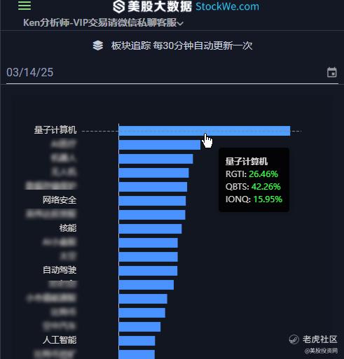 受D-Wave突破性研究的带动,整个量子计算概念股集体走强。 $IONQ Inc.(IONQ)$ 一度涨15%,Rigetti Computing一度涨26%,根据美股大数据 StockWe.com 美股板块追踪,量子计算机今天涨幅遥遥领先于其他板块
