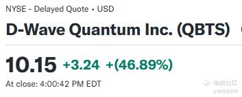 美股 QBTS 量子计算公司今天继续暴涨46%,到10美元大关,原因是公司前天12日宣布,其退火量子计算机在解决复杂磁性材料模拟问题时,性能超越了世界上最强大的传统超级计算机之一,标志着量子计算在现实世界问题上的巨大突破。