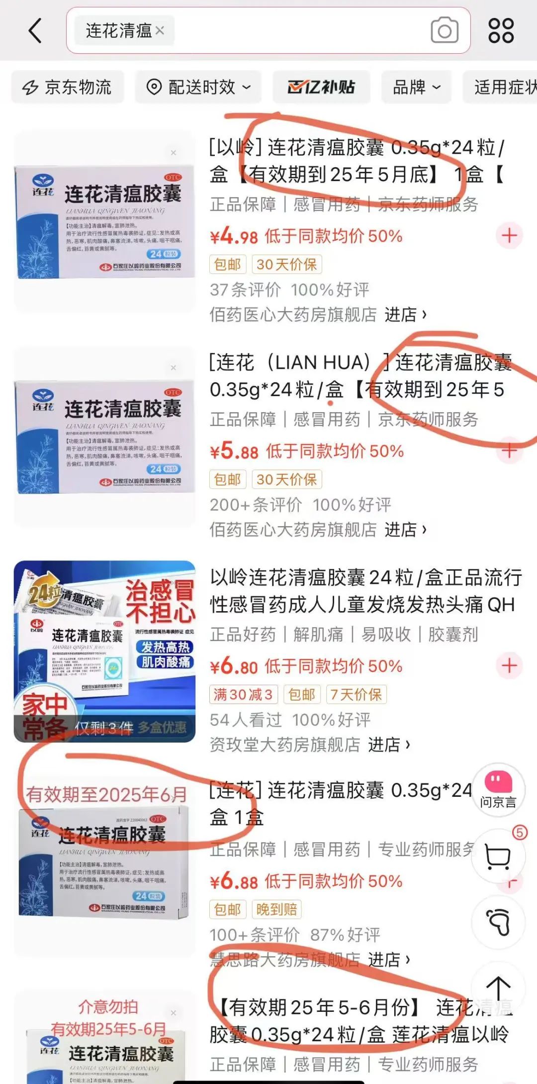 蔚来君查询了一下连花清瘟的保质期,药品介绍上显示为30个月,这就意味着,这些被甩卖的药品都是在2022年底生产的。卖了两年多,连花清瘟2022年的存货还没有清掉。