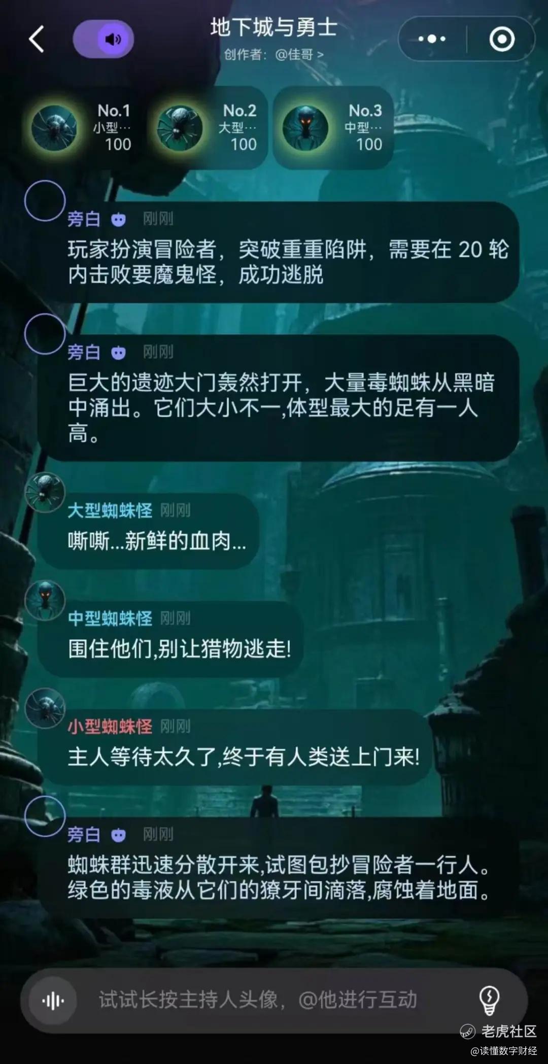 游戏是以对话的形式进行,玩家们扮演冒险者,通过对话去突破NPC设置的陷阱,只需要在20轮内击败妖魔鬼怪,就算通关。