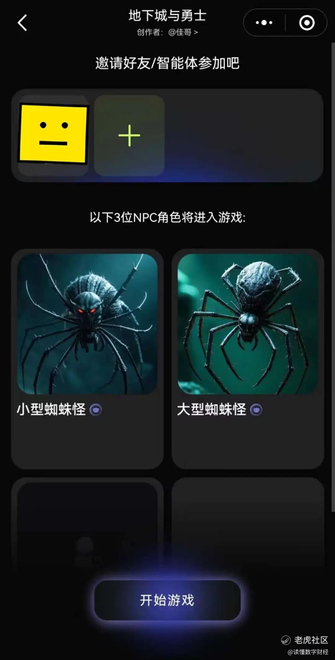 同时还会展示游戏内的NPC角色,这些NPC都是已经设置好剧本的智能体,承担预设剧本角色,增强叙事沉浸感。最后点击开始游戏,就会进入游戏阶段。