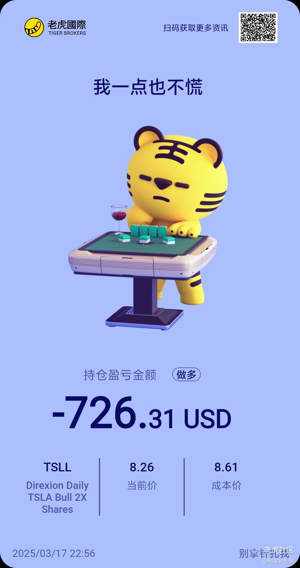 $Direxion Daily TSLA Bull 2X Shares(TSLL)$ 脑子选的做空,手残买了做多!!!