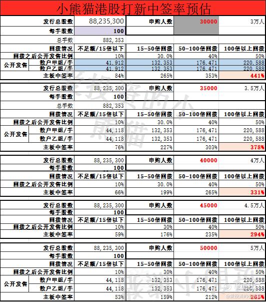 关于一手中签率方面,如果孖展在15倍以下,按照30000人来参与预估一下,一手中签率84%。